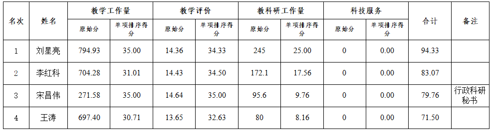 根据学校职改办通知,按照《BEAT365英国官网专业技术职务评审工作实施办法(修订)》(校党发【2019】50号)及职称改革工作领导小组会议纪要相关会议精神执行。经个人申报,BEAT365英国官网专业技术职务评审工作组资格审核,确认李红科、刘星亮、宋昌伟、王涛四位同志符合本年度讲师职称申报条件。