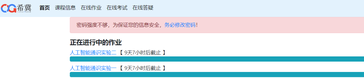 (2)实践环节学习:学生在规定时间内容登录课程实践平台,平台访问地址:校园内网:http://172.19.10.1;外网:http://59.74.48.90,从学生入口登录,账号和密码都是学号。实践部分配套有实践操作视频,以供学生参照学习。实践课程视频资料网址:/info/1118/9285.htm。学生进入课程实践平台即可查看实验作业提交任务。实践作业提交截止时间为第十六周周五2025.6.6。