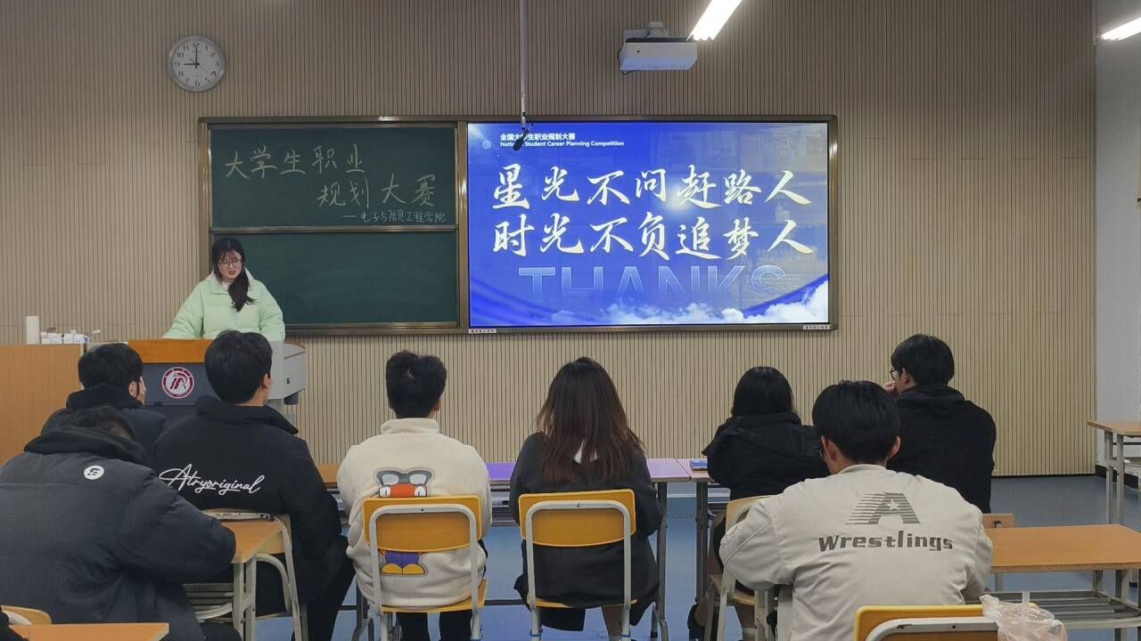 本次共有18位选手入围2024年“大学生职业规划大赛”电子与信息工程学院决赛,比赛现场气氛热烈,选手们依次登台,结合精心制作的PPT,详细阐述了自己的职业目标、发展路径以及应对困难的策略,其规划逻辑清晰、步骤详实,展现出了对未来的深度思考。通过讲述自身的实践经历,生动地描绘出自己理想的职业蓝图,在分享梦想与抱负的同时,也为在场观众带来了深刻的启发,以独特的视角剖析行业趋势,为自己的规划增添了极具前瞻性的色彩。评委们认真听取每位选手的陈述,并在提问环节中提出了一系列富有洞察力的问题。这些问题不仅考验了选手们的应变能力,也促使他们对自己的职业规划进行了更深入的思考。面对评委的提问,选手们沉着应对,展现出了对职业规划的独到见解和深刻理解。评委们的点评和建议也为选手们提供了宝贵的反馈,帮助他们在未来的职业道路上更加明确方向。