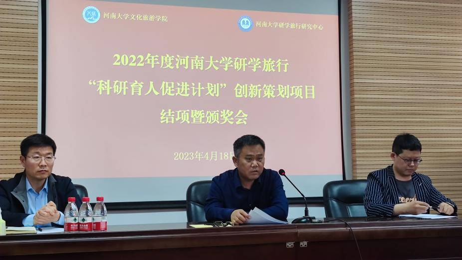 为深入学习贯彻二十大精神,推动研学旅行与科研育人更深层次融合,4月18日下午,葡京8883官网入口文化旅游学院、研学旅行研究中心在学院302会议室举行了“科研育人促进计划”创新策划项目结项暨颁奖会议。文化旅游学院党委书记孔涛、副院长徐飞、研学旅行研究中心项目指导教师及学生代表参加会议,研学旅行研究中心主任陈楠主持会议。